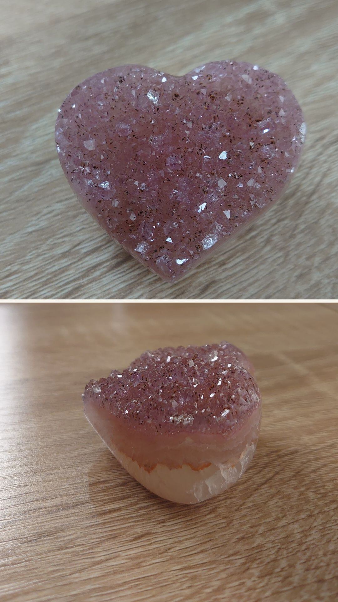 【天然石】 アゲート(瑪瑙)✖ドゥルージー ピンクで可愛いハート型の天然石♡ 小さな結晶がとっても可愛いですよ♡ 大きさ=約4.6✖5.1㎝✖2.7㎝